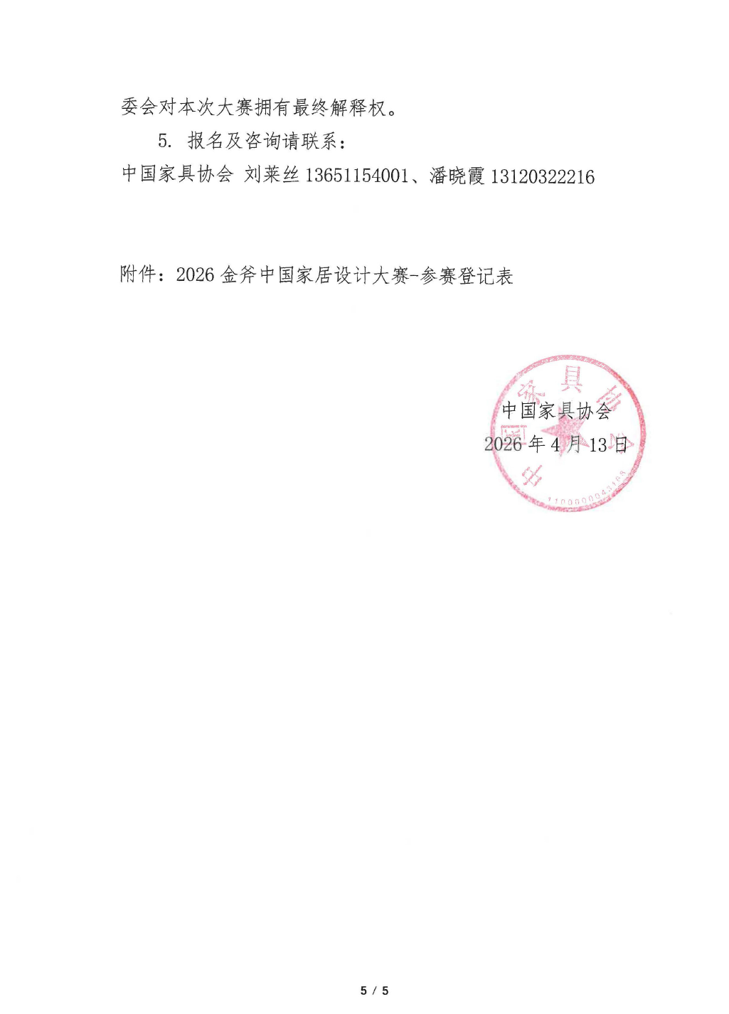 2026金斧中国家居设计大赛艺赛中国4月16日 21:43发布551 点击下载:附件-2026金斧中国家居设计大赛-参赛登记表 © 版权声明文章版权归作者所有,未经允许请勿转载。THE END国内赛事# 大赛# 2026# 中国# 设计# 家居 喜欢就支持一下吧