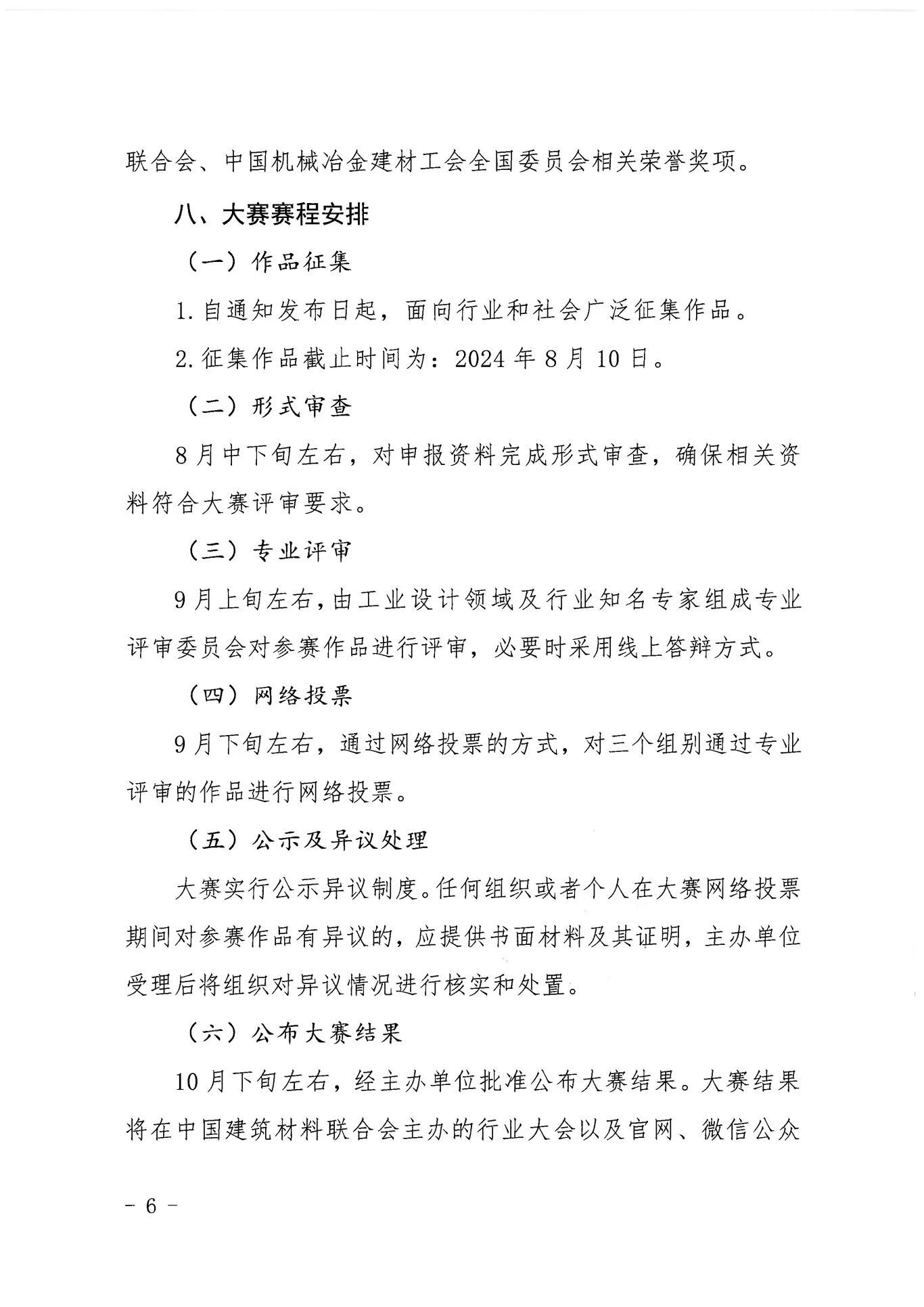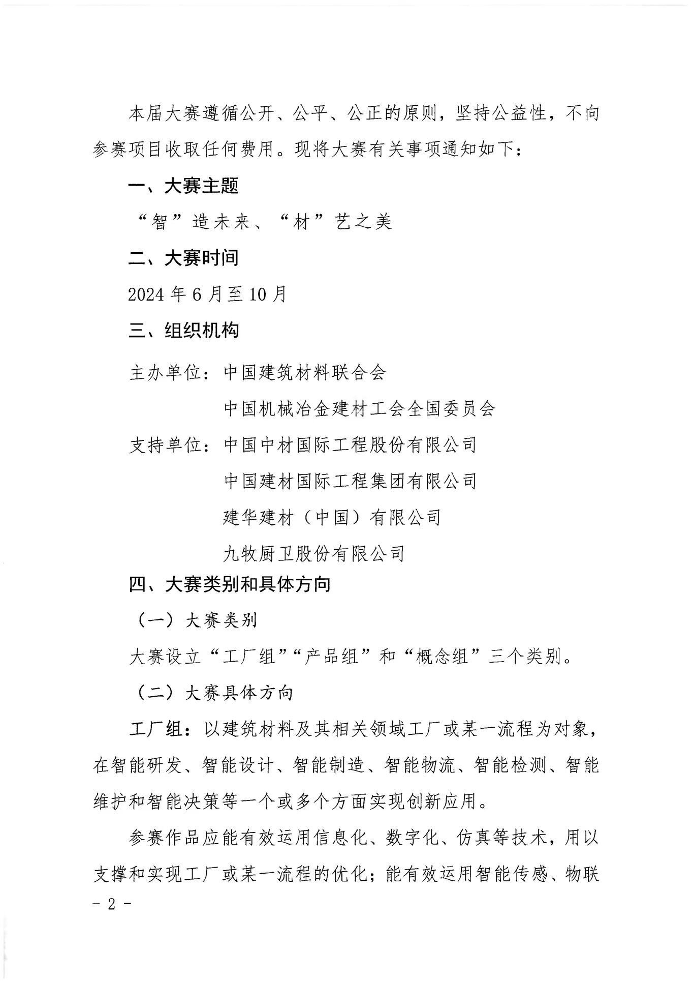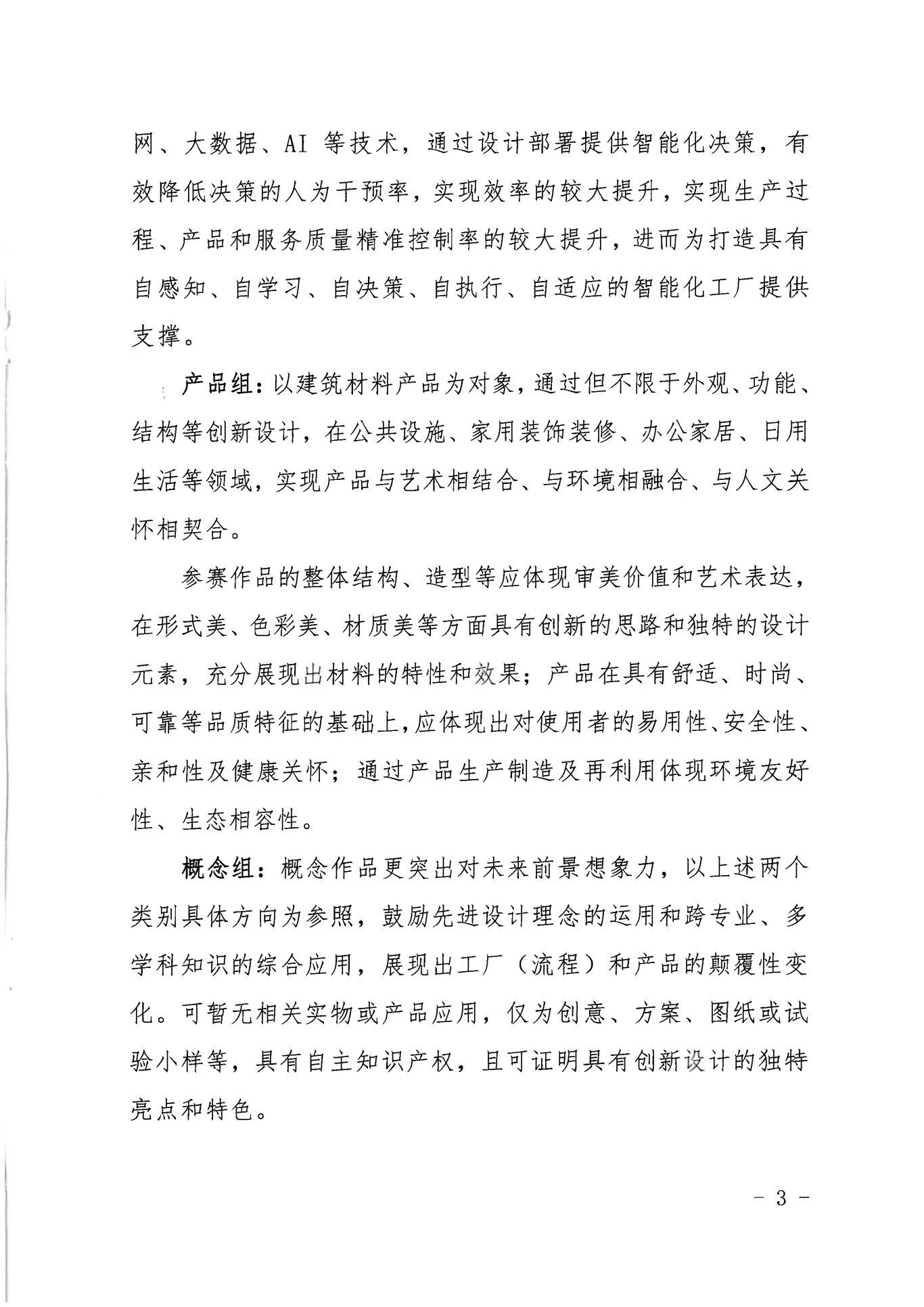 为贯彻落实习近平总书记“大力推进现代化产业体系建设,加快发展新质生产力”重要指示精神,积极践行“宜业尚品、造福人类”建材行业发展目标,更好的引导建筑材料行业企业发挥工业设计在构建现代化建材产业体系中的重要作用,不断推动工业设计与建筑材料行业的深度融合,在总结2023年首届建筑材料工业设计创新活动经验的基础上,经研究,中国建筑材料联合会与中国机械冶金建材工会全国委员会将共同组织开展第二届建筑材料工业设计创新大赛。