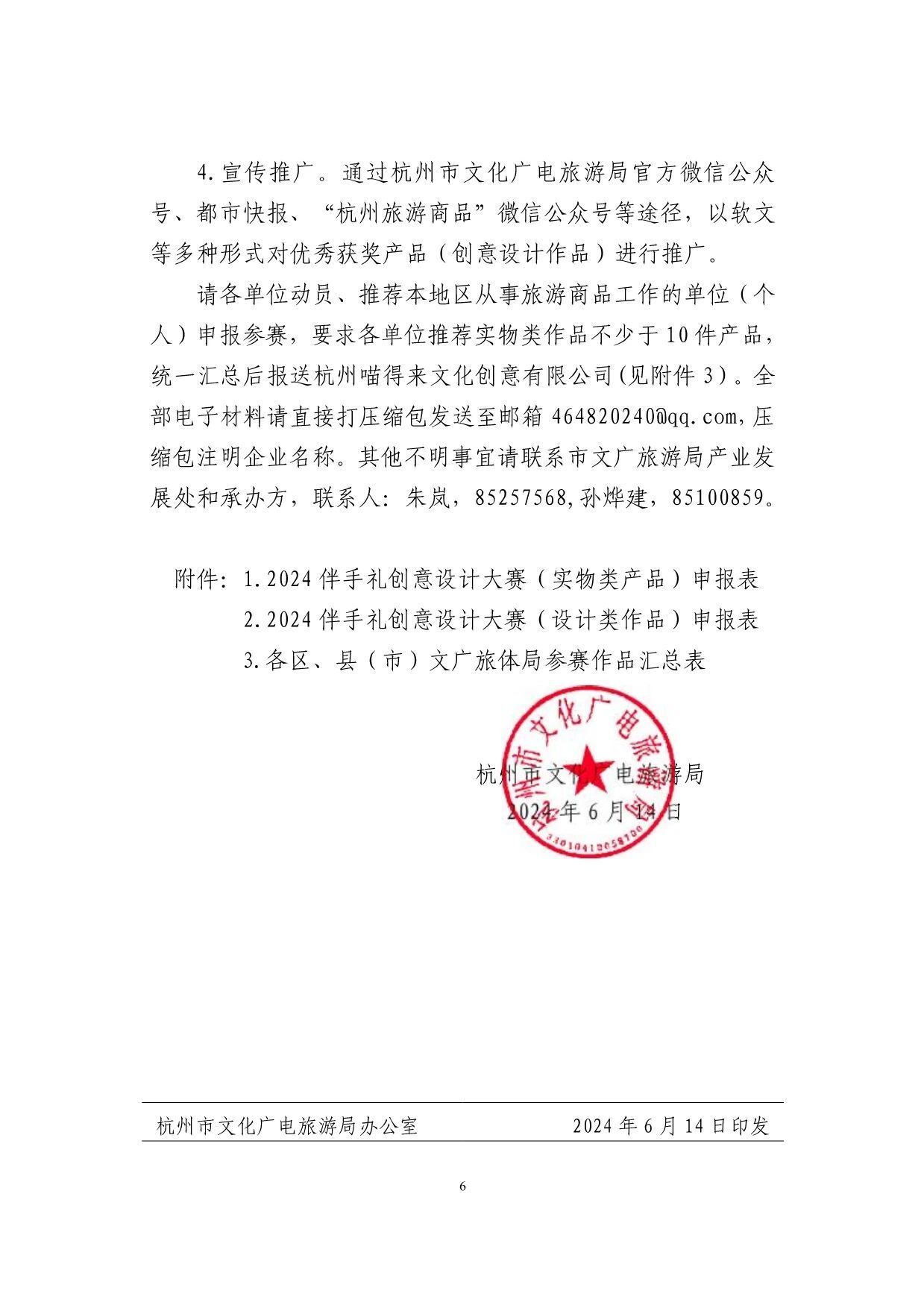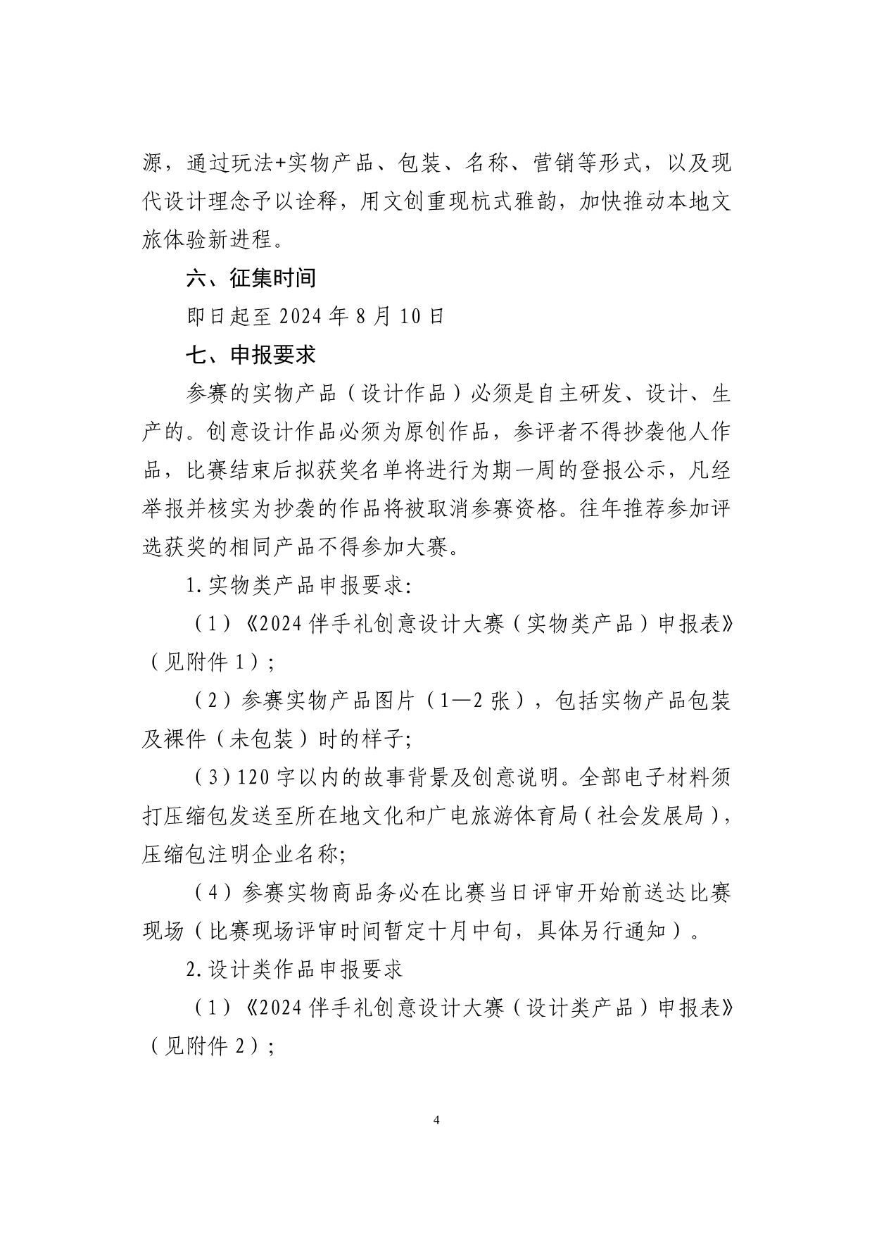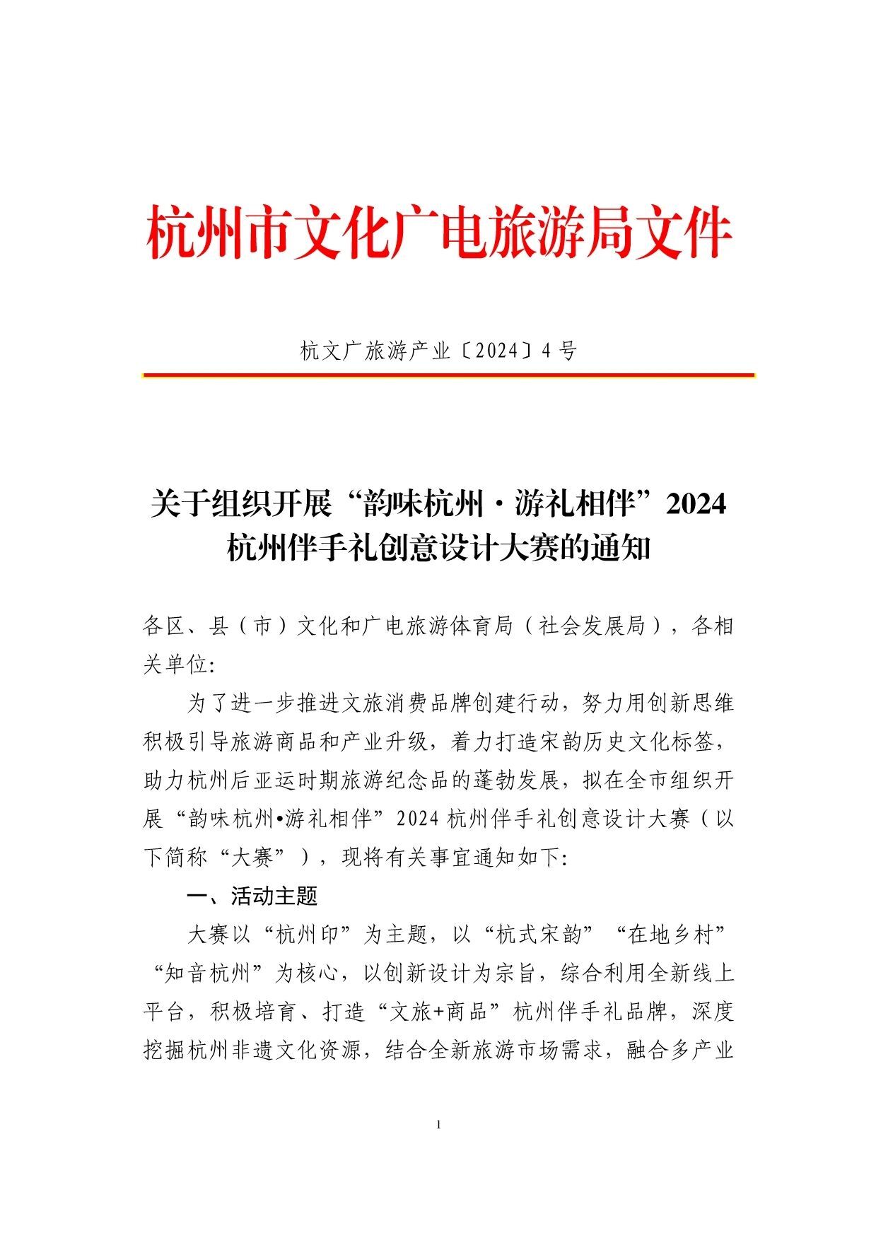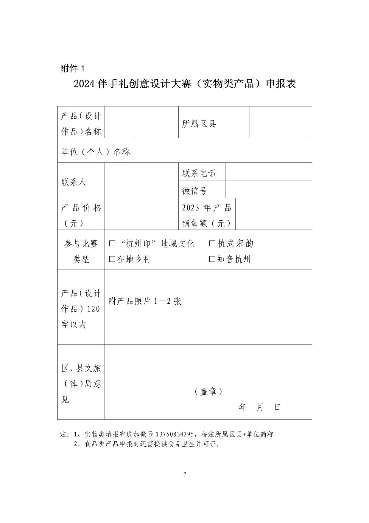 “韵味杭州·游礼相伴”2024杭州伴手礼创意设计大赛艺赛中国7月20日 23:50发布933 为了进一步推进文旅消费品牌创建行动,努力用创新思维积极引导旅游商品和产业升级,着力打造宋韵历史文化标签,助力杭州后亚运时期旅游纪念品的蓬勃发展,拟在全市组织开展“韵味杭州•游礼相伴”2024杭州伴手礼创意设计大赛(以下简称“大赛”),现将有关事宜通知如下: 一、活动主题 大赛以“杭州印”为主题,以“杭式宋韵”“在地乡村”“知音杭州”为核心,以创新设计为宗旨,综合利用全新线上平台,积极培育、打造“文旅+商品”杭州伴手礼品牌,深度挖掘杭州非遗文化资源,结合全新旅游市场需求,融合多产业和跨界新思想,创造富有更多文化价值且具有地域特色的杭式伴手礼,满足新消费,引领新需求,不断推动旅游商品行业转型升级和高质量发展。 二、举办单位 主办单位:杭州市文化广电旅游局 三、申报范围 分实物类和创意设计类(设计图稿)两大类。 1.实物类:含旅游工艺品、旅游纪念品、创意伴手礼、特色文创产品、旅游特色食品以及创意类日用品、运动类旅游商品,产品便于携带,有纪念价值,且市场价格符合大众消费能力。申报的单位或个人需在填写时选择参赛产品相应类别进行申报。 2.创意设计类:具有地域性、实用性、审美性、可转化性、纪念性的设计图稿、外观结构概念设计模型及包装设计,可附打样实物,作品形式外观造型、图案不限,适合量产,价格定位和制作成本合理。 四、参赛对象 大赛面向全国征集作品,凡从事旅游纪念品研发、设计、生产、销售的各企事业单位、大专院校设计专业师生、独立设计师或个人等均可报名。 五、作品要求 1.实物类产品。包含杭州地域特征,有一定文化叙述、传播能力,且内容不杜撰,创意真实可考证,通过实物产品传递出杭州独特韵味,主要围绕四大方面: (1)“杭州印”。杭州风景秀美,人文气息浓厚,素有“人间天堂”的美誉。每一位来到杭州的游客,无不被它的隽丽多姿深深吸引,在回忆中烙下江南的印记。优雅的西湖十景、壮阔的运河、沧桑的良渚、宁静的西溪,以及空前盛大的杭州亚运会……杭州有太多的美好值得被看到。在本次创意设计大赛中,选手可以发挥想象,任创意驰骋,讲述杭州带给人们最深刻的印记,以旅游商品留住杭州独特的韵味。 (2)杭式宋韵。立足宋韵文化底蕴,走进杭式生活,以宋韵故事、宋代美食、宋式元素进行创意设计,设计开发承载宋式经典内容的文创产品,加快推动宋韵文化创造性转化、创新性发展。 (3)在地乡村。依托杭州深厚的历史文化底蕴,以周边区、县特色人文特点为依据,结合人物、符号、传说等元素,开发出能够反映杭州在地乡村文化特色、文化内涵和民俗元素的产品或包装设计。 (4)知音杭州。以杭州音乐文化为主题,通过文创产品的形式,传递杭州的音乐魅力,设计开发具有杭州独特音乐元素的主题伴手礼及音乐周边文化产品,成为杭州音乐文化的新名片,感受杭州的音乐魅力。 2.创意设计类作品。可围绕“杭州印”展开创意,着重以时下市场喜闻乐见的印章作为设计载体,将杭州核心的文旅资源,通过玩法+实物产品、包装、名称、营销等形式,以及现代设计理念予以诠释,用文创重现杭式雅韵,加快推动本地文旅体验新进程。 六、征集时间 即日起至2024年8月10日 七、申报要求 参赛的实物产品(设计作品)必须是自主研发、设计、生产的。创意设计作品必须为原创作品,参评者不得抄袭他人作品,比赛结束后拟获奖名单将进行为期一周的登报公示,凡经举报并核实为抄袭的作品将被取消参赛资格。往年推荐参加评选获奖的相同产品不得参加大赛。 1.实物类产品申报要求: (1)《2024伴手礼创意设计大赛(实物类产品)申报表》(见附件1); (2)参赛实物产品图片(1—2张),包括实物产品包装及裸件(未包装)时的样子; (3)120字以内的故事背景及创意说明。全部电子材料须打压缩包发送至所在地文化和广电旅游体育局(社会发展局),压缩包注明企业名称; (4)参赛实物商品务必在比赛当日评审开始前送达比赛现场(比赛现场评审时间暂定十月中旬,具体另行通知)。 2.设计类作品申报要求 (1)《2024伴手礼创意设计大赛(设计类产品)申报表》(见附件2); (2)提交作品名称、玩法、效果图、设计说明、市场前景应用等相关资料,要求每件作品需提交2—4张作品的电子档(作品的效果图或实物照片均可),要能体现作品的整体、局部、不同视角、尺寸等效果(电子文档要求:A4幅面,300dpi,RGB模式,存储格式为JPEG。设计稿统一以毫米(mm)为计量单位注明比例和尺寸)。全部电子材料请直接打压缩包发送至邮箱464820240@qq.com,压缩包注明企业名称和作品名称; (3)设计作品类参赛者须准备参赛作品纸质稿件,纸质稿要求统一A4单面横向彩色打印,并直接寄送至杭州市下城区朝晖路209号中山花园风荷苑15G,孙先生收,联系电话:0571-85100859。 八、奖励设置 1.奖项设置。采用专家评审的方式产生本年度优秀旅游商品杭州地域文化类(杭州印主题)金、银、铜奖、“最具韵味的宋韵好礼”、“最具人气的乡村伴手礼”、“最具特色的知音杭州伴手礼”及创意设计作品类一、二、三等奖若干。 2.IP授权。创意设计类获得前三名作品,且作品可实现商业落地的,经IP方确认可对产品予以商品化落地。 3.优先推荐。选送大赛获奖