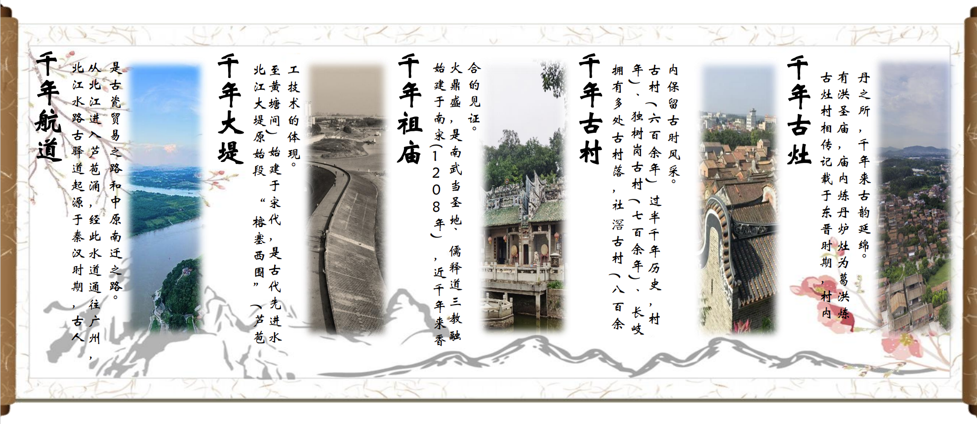 对内,北江与西江分别通过梅岭古道、灵渠连接中原;对外,三水地区通过芦苞涌与广州联通,共同成为繁盛的内外贸易窗口。故而北江自古就是南北交流的重要通道,千年的商道连绵不绝——千年航道、千年大堤、千年祖庙、千年古村、千年古灶汇聚,同时沿途相生的海丝文化、广府文化、名人文化和红色文化也造就了乐平、芦苞的繁华盛景。