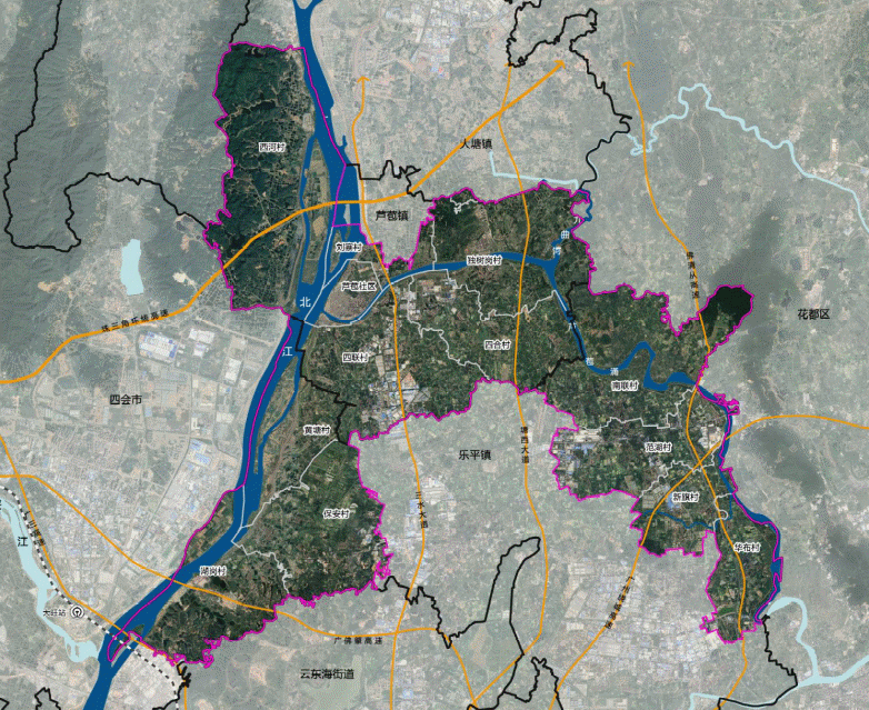北江千年古道农文科旅创意带位于佛山市三水区,整体范围跨越北江、芦苞涌,包括乐平镇、芦苞镇的湖岗村、保安村、黄塘村、南联村、范湖村、新旗村、华布村、芦苞社区、四联村、刘寨村、独树岗村、四合村、西河村13个行政村,面积共计198平方公里,全长约44公里。
