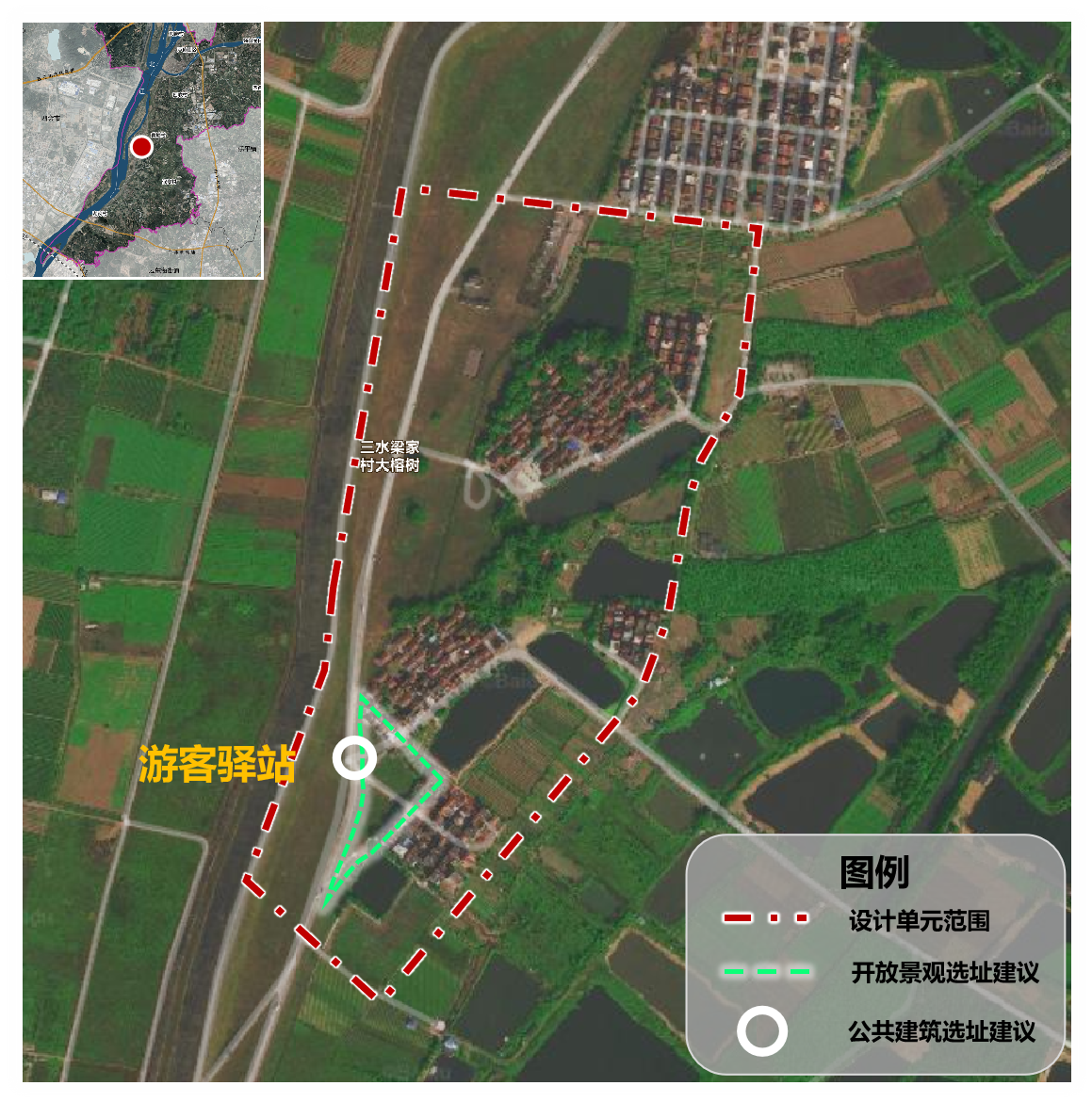 概况及建议:梁家村公交站作为黄塘一棵树文旅项目的核心交通门户,是千年古道核心段上的重要节点,设计可对公交站点、智慧服务、整体风貌、建筑立面进行重点策划。