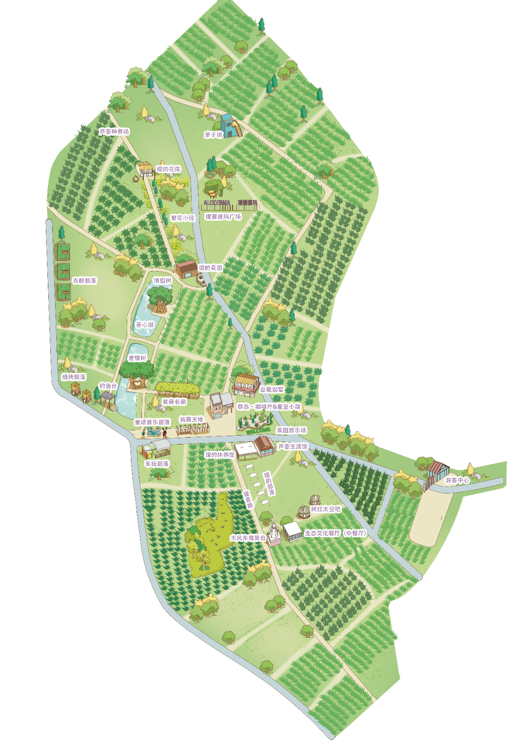 3.设计风格:与芦荟庄园文化相融合、现有美式建筑相协调的生态田园风格,建筑材料环保自然。