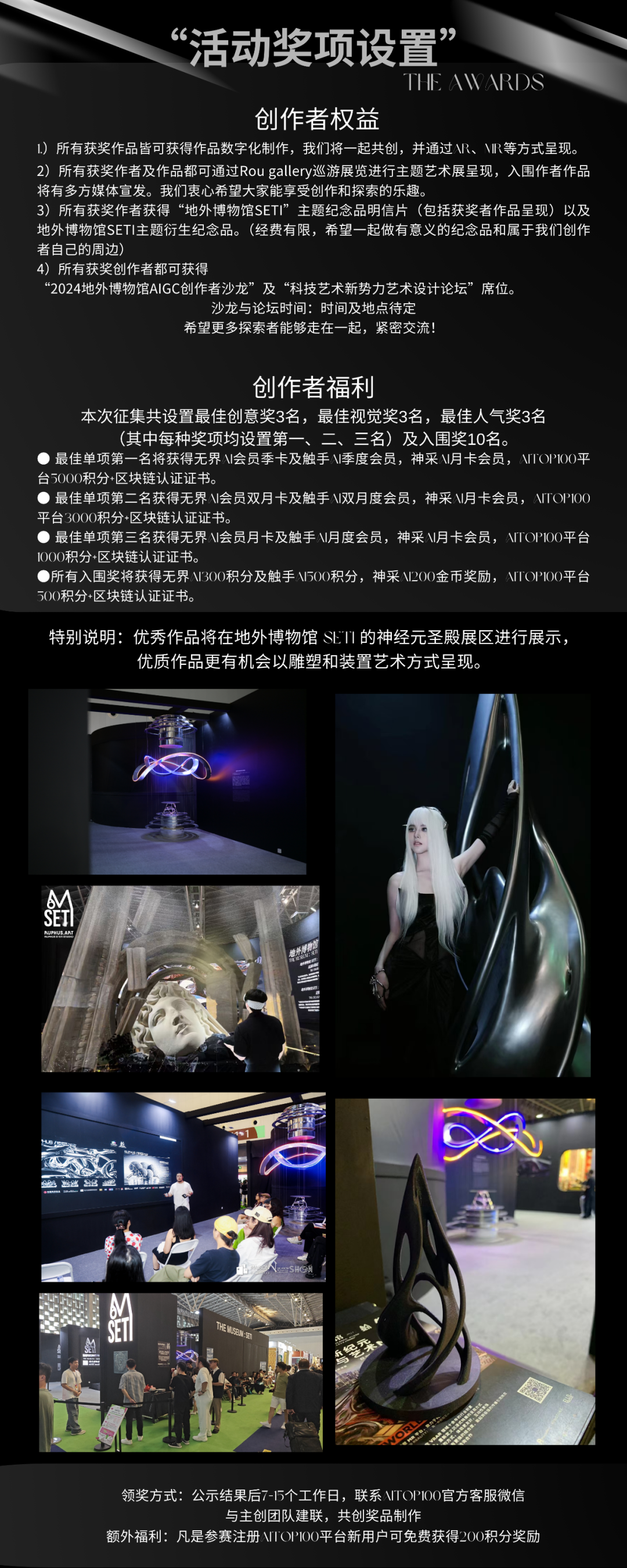 2024「地外博物馆SETI」× 第二届共创征集赛艺赛中国11月7日 21:43发布1067 © 版权声明文章版权归作者所有,未经允许请勿转载。THE END国内赛事# 2024# 博物馆# 共创# SETI# 地外 喜欢就支持一下吧