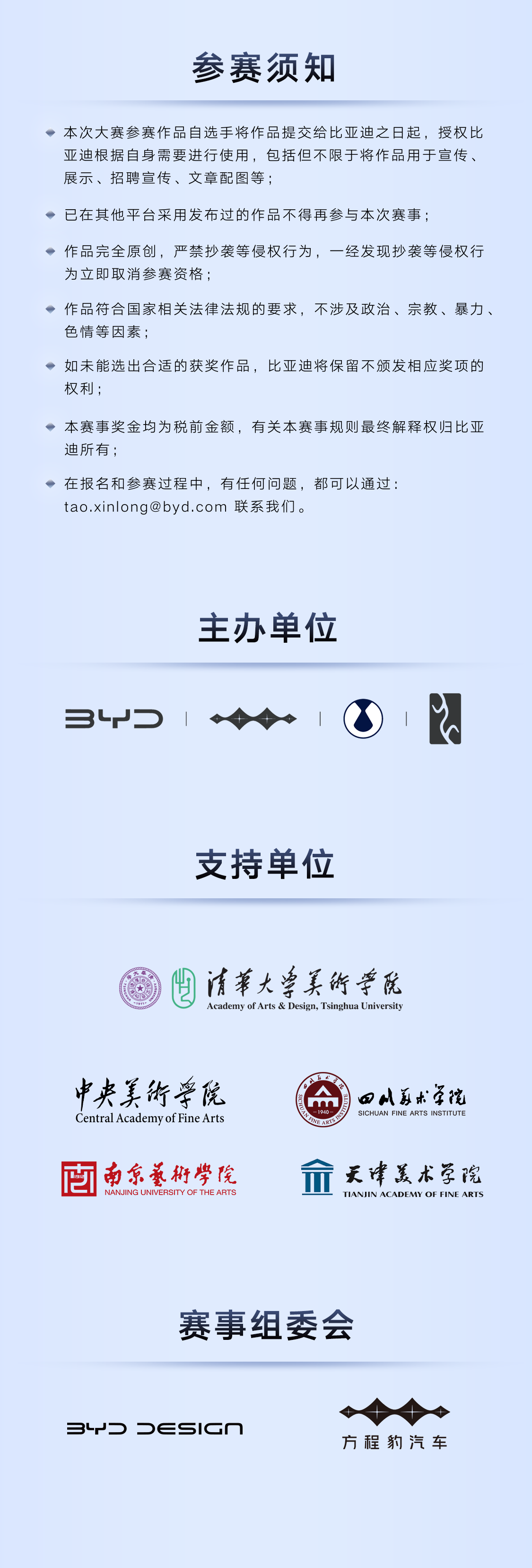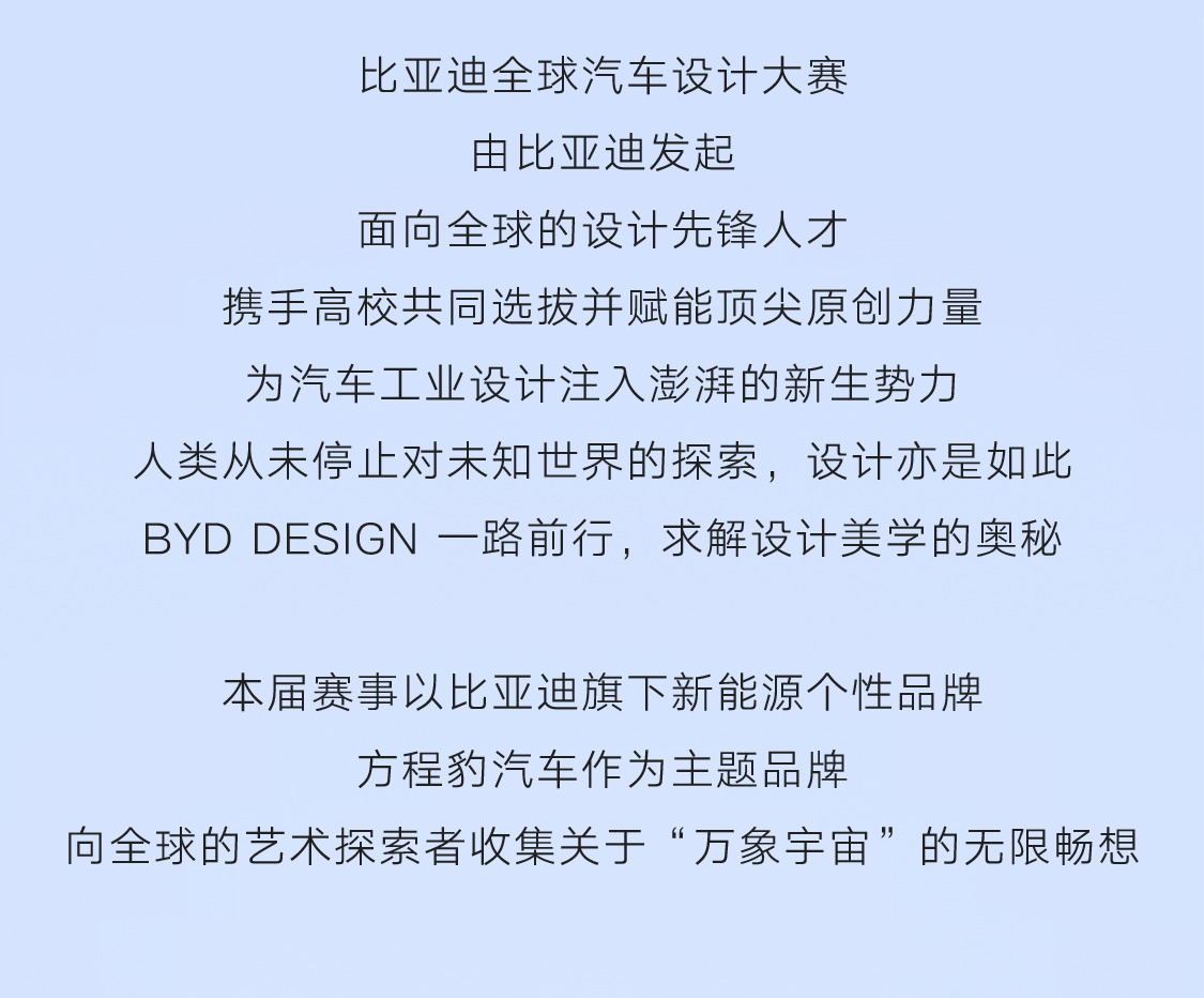 2024比亚迪全球汽车设计大赛艺赛中国11月10日 21:43发布1002 © 版权声明文章版权归作者所有,未经允许请勿转载。THE END国内赛事# 大赛# 2024# 全球# 比亚迪# 汽车 喜欢就支持一下吧