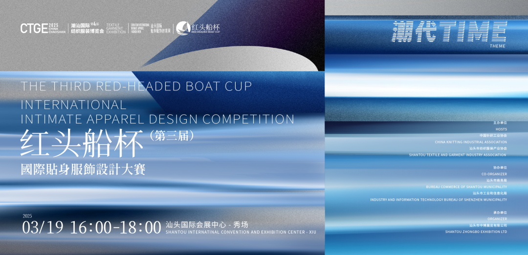 第三届 “ 红头船杯 ” 国际贴身服饰设计⼤赛THE THIRD RED-HEADED BOAT CUP INTERNATIONAL INTIMATE APPAREL DESIGN COMPETITION作品征集正式拉开帷幕“红头船杯”国际贴身服饰设计大赛是潮汕服博会的标志性特色活动,至今已成功举办了两届。这一大赛是贴身服饰设计领域的一场创新与艺术并重的盛宴,模特们成为了设计师灵感与巧妙构思的生动载体,入围作品展示获得了专业评委和台下观众的一致好评,经过多环节激烈比拼,选手们满载而归。第三届“红头船杯”国际贴身服饰设计大赛,在前两季原有内容的基础上,融入全新创想,聚焦贴身服饰与设计,继续致力成为全球针织时尚领域高规格、具有广泛影响力的专业贴身服饰设计赛事,促进提升中国内衣及家居服行业设计水平,挖掘优秀设计师,通过设计创造商业价值,赋能纺织服装产业发展巨轮逐浪前行。潮代·属于我们的时代潮涌代新,速绘裳韵