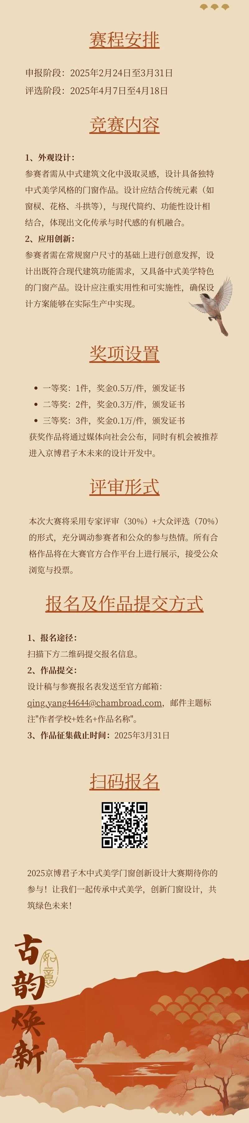 2025京博君子木中式美学门窗创新设计大赛艺赛中国3月7日 21:43发布969 © 版权声明文章版权归作者所有,未经允许请勿转载。THE END国内赛事# 2025# 创新# 中式# 京博# 君子木 喜欢就支持一下吧