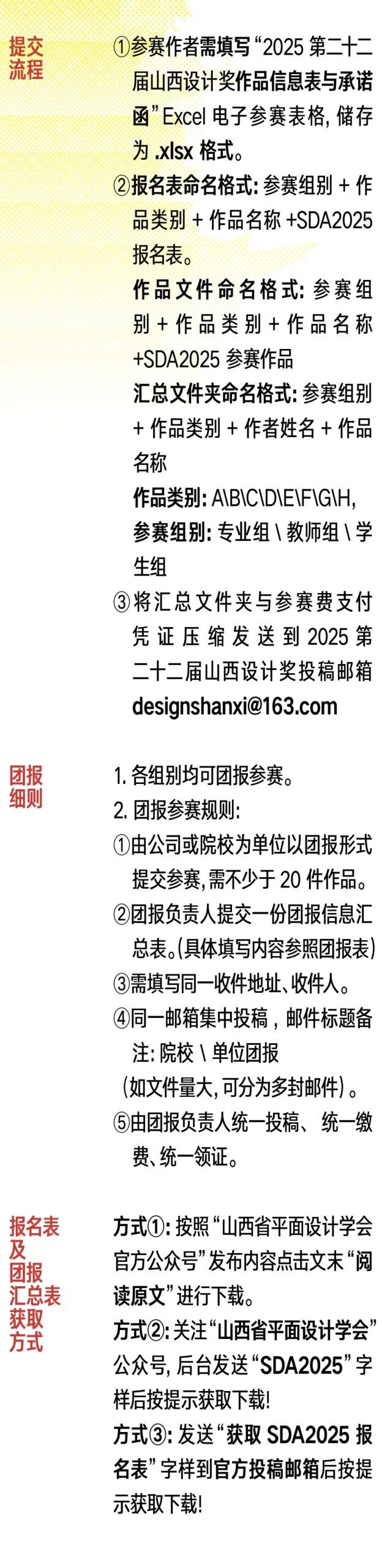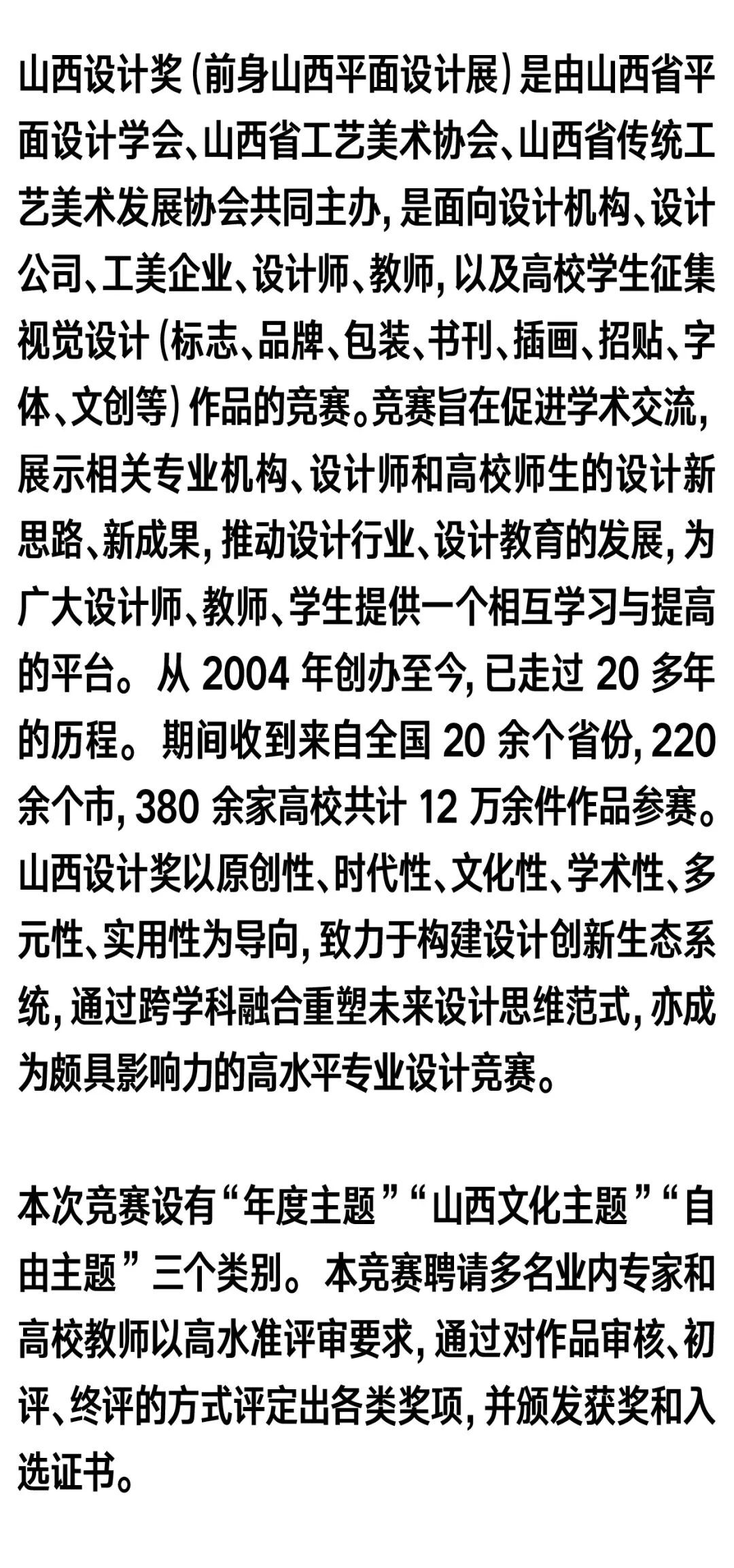 2025第二十二届山西设计奖艺赛中国3月22日 21:43发布1610 ▼ 点击下载报名表:https://pan.baidu.com/share/init?surl=6xqlnyZAjwFd8yJ119xi4w&pwd=SXSJ&sessionid=-1455416280 © 版权声明文章版权归作者所有,未经允许请勿转载。THE END国内赛事# 2025# 设计奖# 山西# 第二十二届 喜欢就支持一下吧