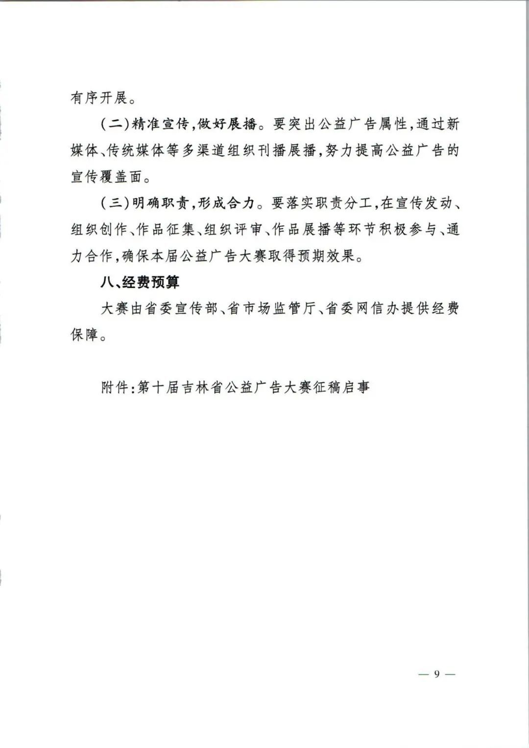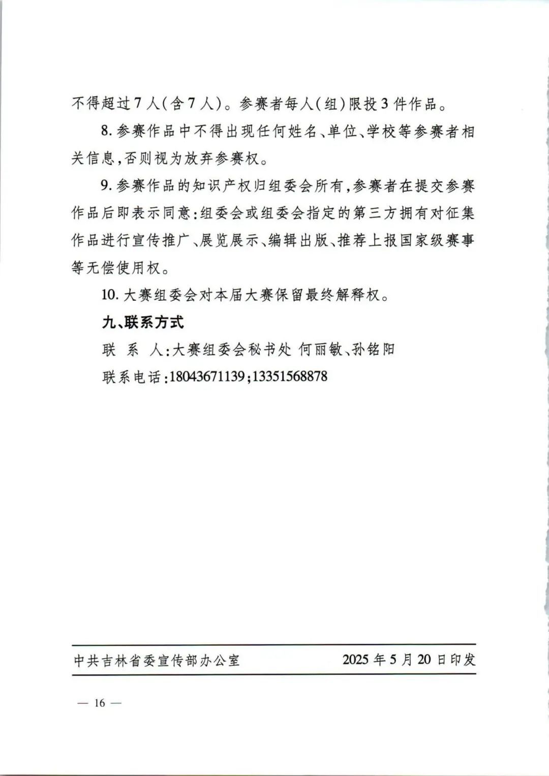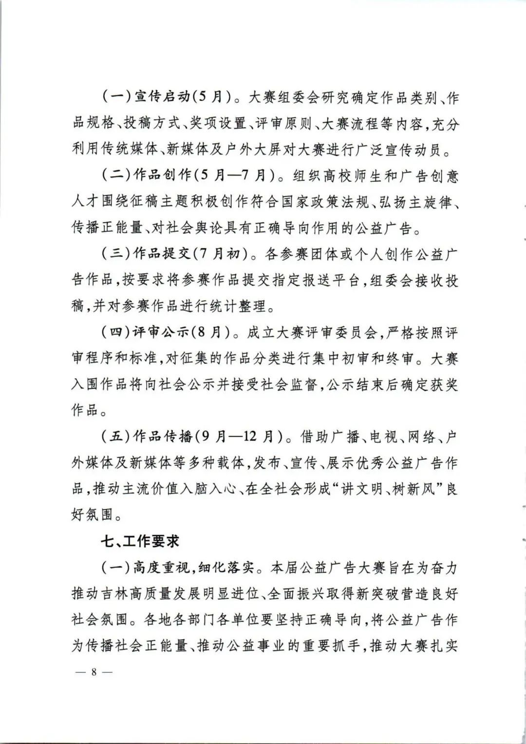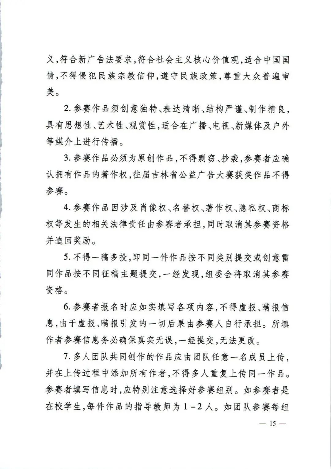 2025第十届吉林省公益广告大赛艺赛中国5月24日 21:43发布1745 点击下载:关于印发《第十届吉林省公益广告大赛活动方案》的通知 © 版权声明文章版权归作者所有,未经允许请勿转载。THE END国内赛事# 大赛# 2025# 公益# 广告# 吉林省 喜欢就支持一下吧