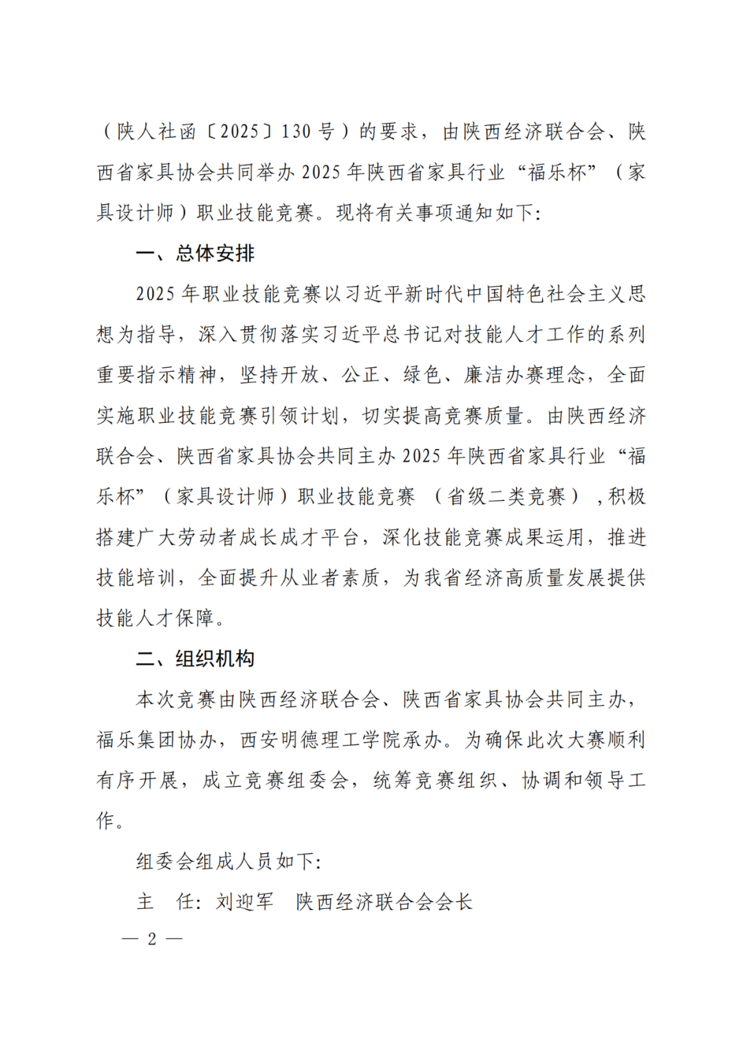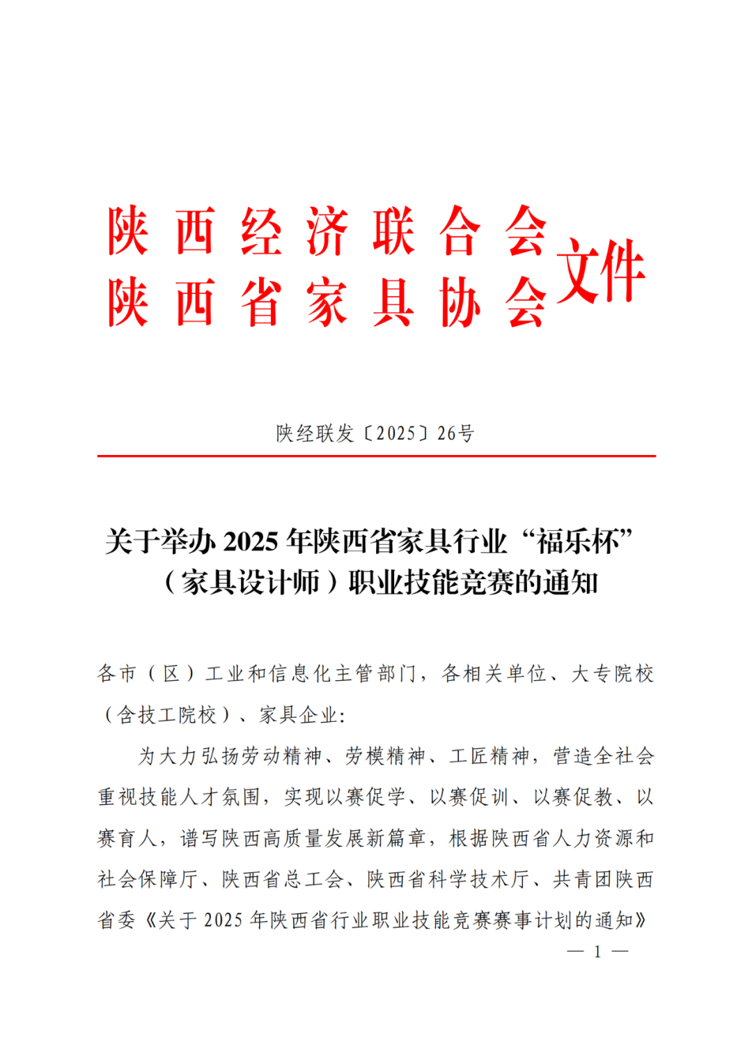 2025年陕西省家具行业“福乐杯”(家具设计师)职业技能竞赛艺赛中国7月14日 21:43发布606 © 版权声明文章版权归作者所有,未经允许请勿转载。THE END国内赛事# 2025# 家具# 技能# 家具设计师# 福乐杯 喜欢就支持一下吧