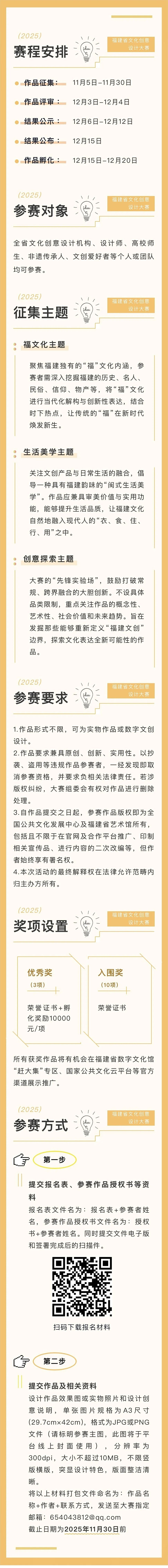 山海相逢,创意飞扬!第三届福建省文化创意设计大赛于今日正式拉开帷幕,本届比赛以“一路山海一路歌 创意赶集新福建”为主题,诚邀全省创意人才共赴一场文化盛宴。大赛由福建省文化和旅游厅指导,福建省艺术馆(福建省非物质文化遗产保护中心)主办,依托“赶大集”系列活动平台,深度挖掘福建文化资源,推动传统文化创造性转化与创新性发展。
