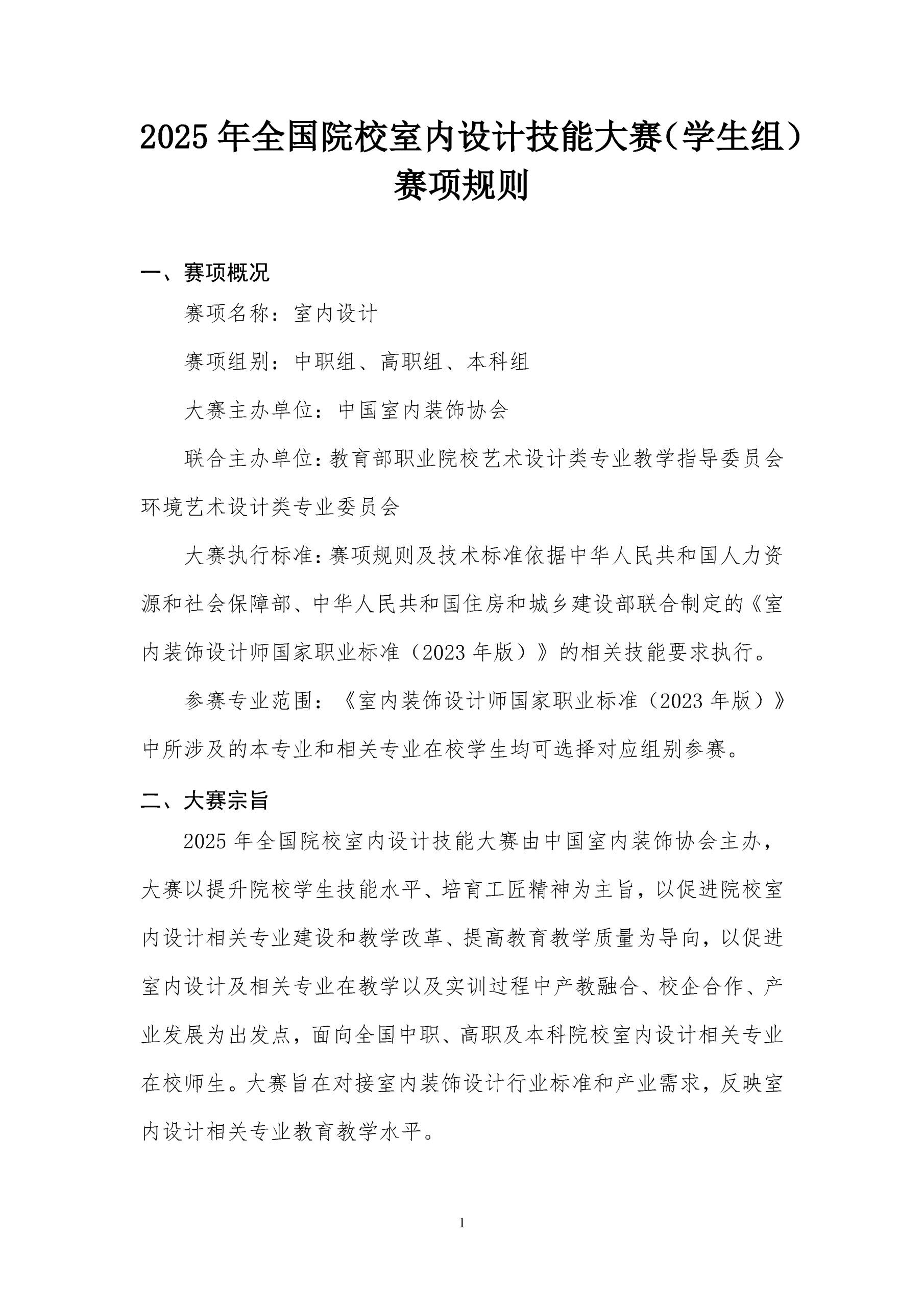 2025 年全国院校室内设计技能大赛(学生组)艺赛中国11月23日 21:43发布638 点击下载相关附件:https://cdn-misc.zhrccp.com/cida-website/1762830282112_FCbGf.rar © 版权声明文章版权归作者所有,未经允许请勿转载。THE END国内赛事# 大赛# 2025# 全国# 学生# 室内设计 喜欢就支持一下吧