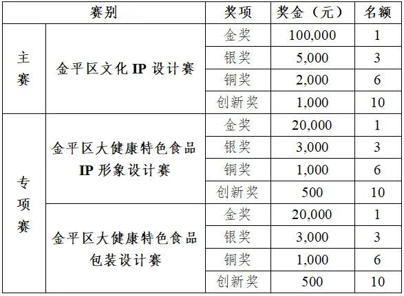 本届大赛围绕金平区大健康特色食品产业与文旅产业发展需求,共设置1个主赛与2个专项赛: