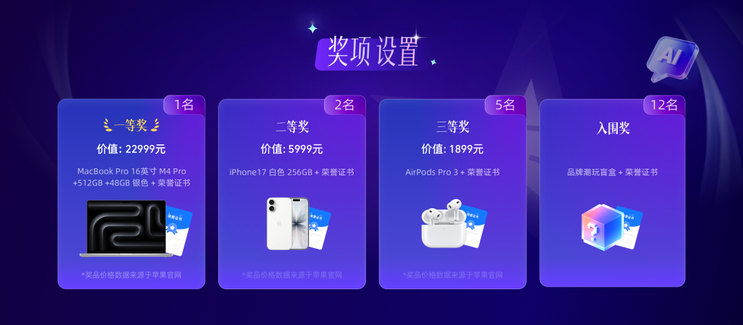 🥉 三等奖(5名) 价值¥1899 – AirsPods Pro3 白色+荣誉证书