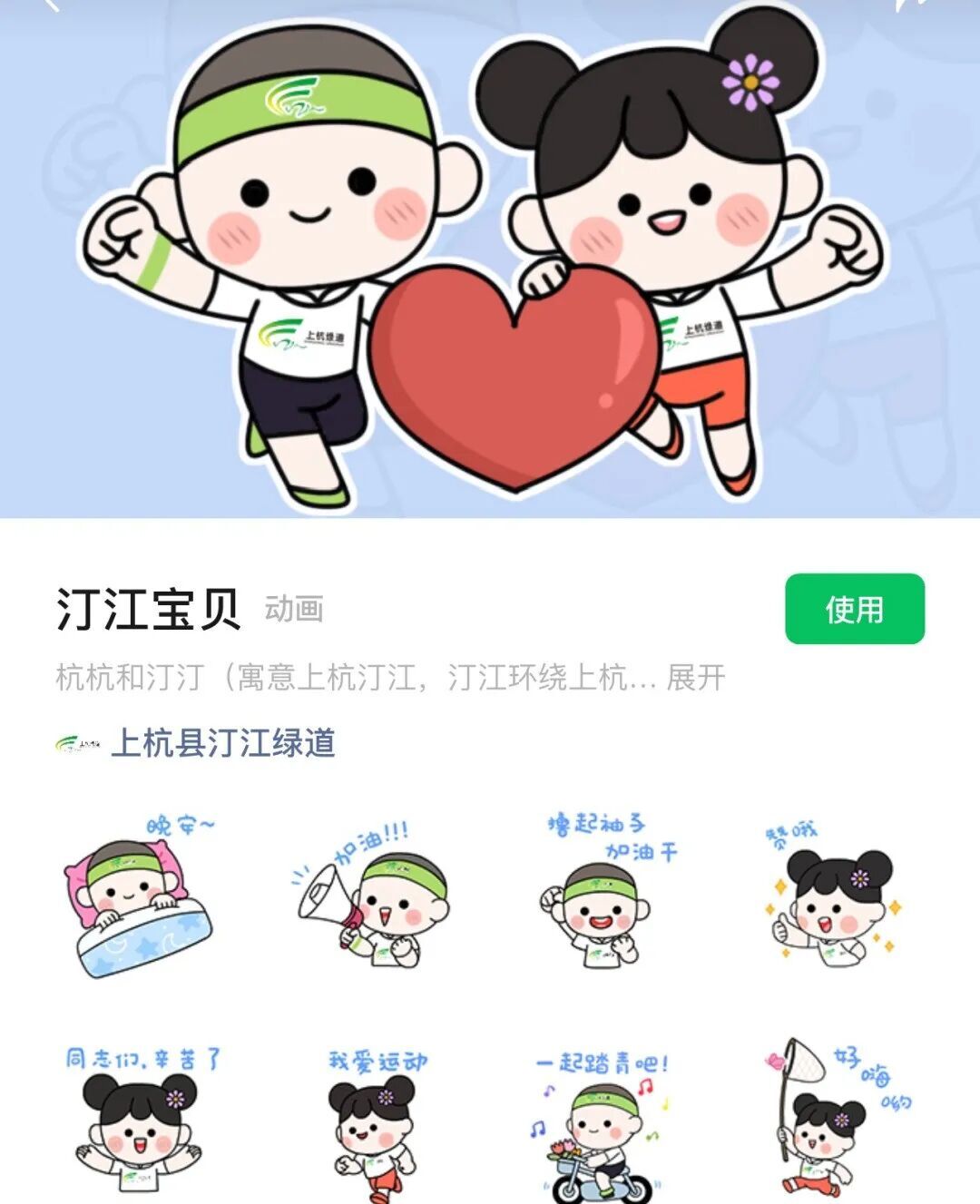3.绿道萌趣系列:以“汀江绿道”IP形象为核心,设计表情包、小物等萌系产品。如图: