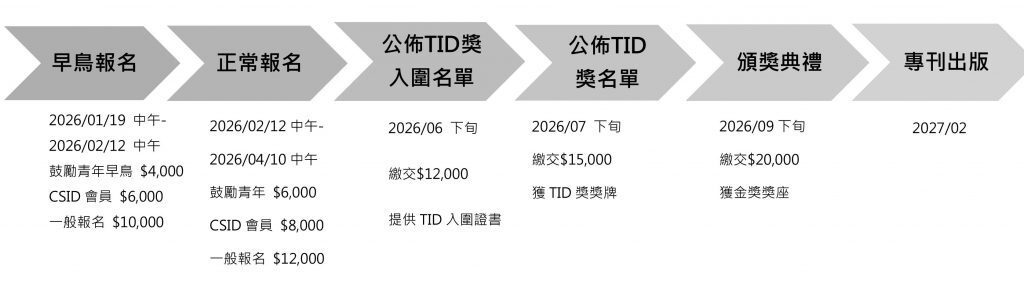 TID奖入围名单公告 – 2026年6月下旬:TID奖入围者需缴交入围复审费用NT$12,000元整。