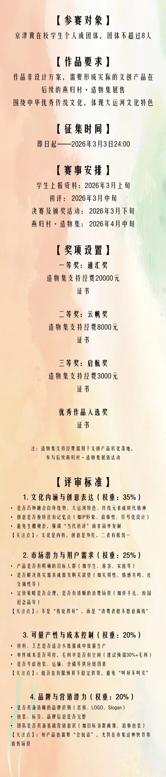2026首届北京城市副中心大学生传统文化创意作品大赛艺赛中国2月10日 02:30发布964 © 版权声明文章版权归作者所有,未经允许请勿转载。THE END国内赛事# 创意# 2026# 作品# 传统# 副中心 喜欢就支持一下吧