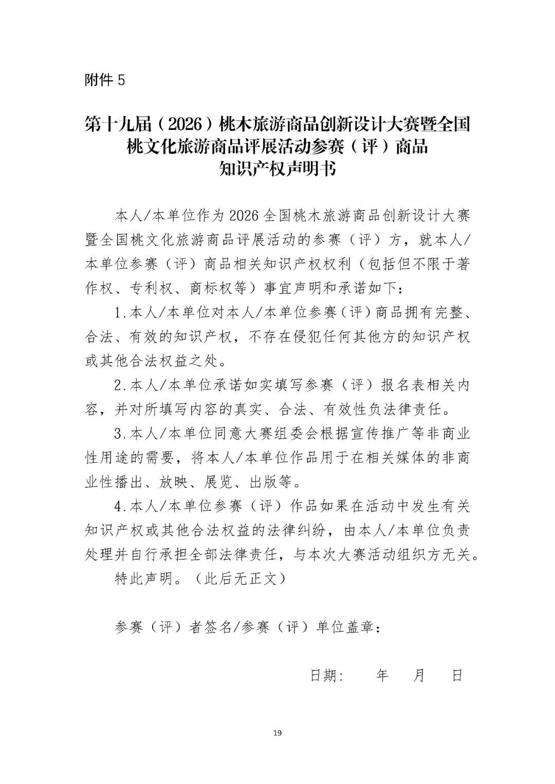 第十九届(2026)桃木旅游商品创新设计大赛暨全国桃文化旅游商品评展活动艺赛中国3月15日 04:57发布733 扫码二维码下载相关附件 © 版权声明文章版权归作者所有,未经允许请勿转载。THE END国内赛事# 大赛# 2026# 创新# 全国# 商品 喜欢就支持一下吧
