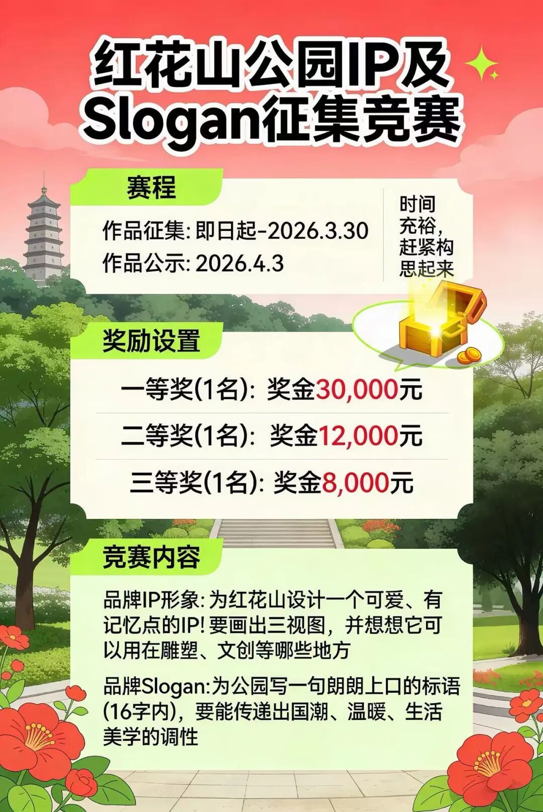 还等什么,别让创意沉睡,来红花山,做公园的 “顶流设计师”!