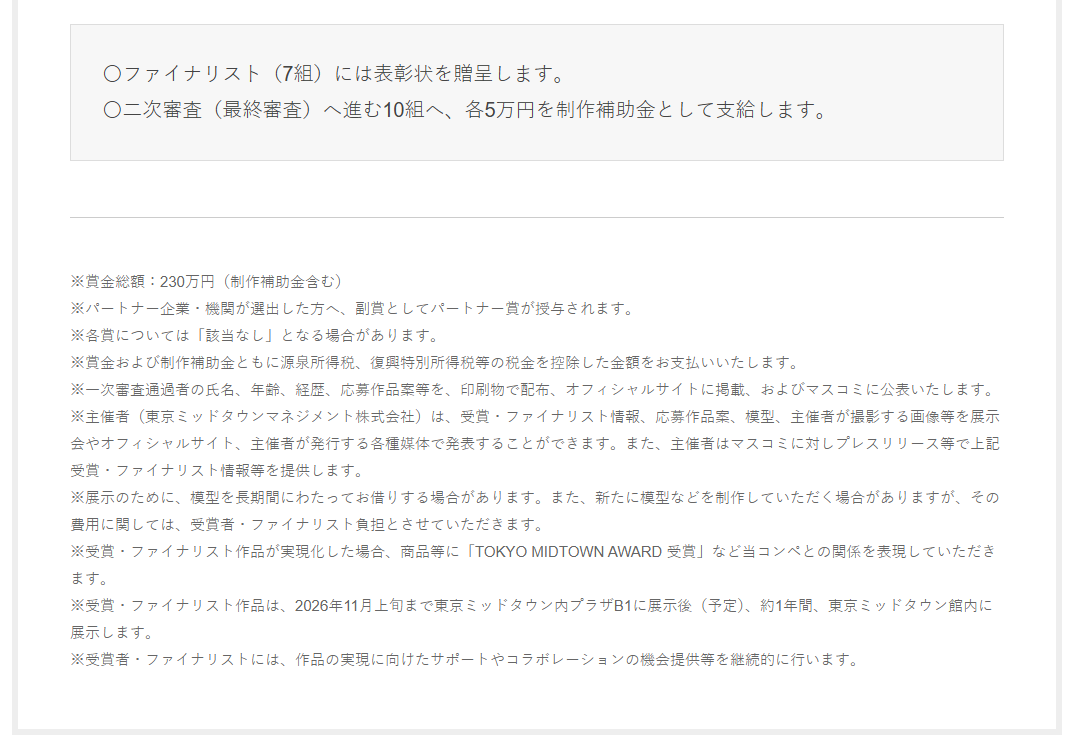 大赛官网:https://www.tokyo-midtown.com/jp/award/