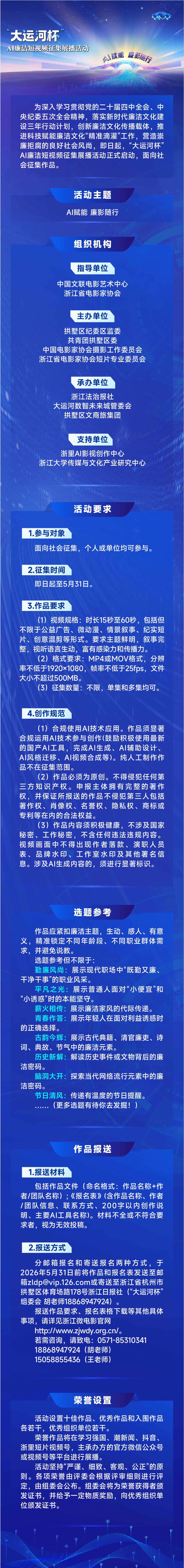 2026“大运河杯”AI廉洁短视频征集展播活动作品征集艺赛中国4月1日 21:43发布859 © 版权声明文章版权归作者所有,未经允许请勿转载。THE END国内赛事# 2026# 作品# AI# 大运河# 展播 喜欢就支持一下吧