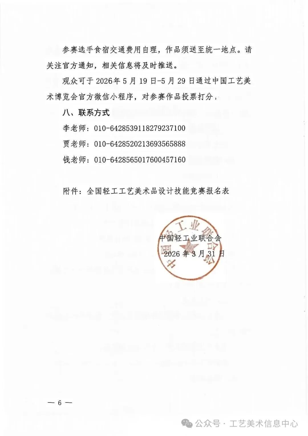 2026全国轻工工艺美术品设计技能竞赛艺赛中国4月4日 21:43发布821 © 版权声明文章版权归作者所有,未经允许请勿转载。THE END国内赛事# 2026# 全国# 竞赛# 技能# 工艺 喜欢就支持一下吧