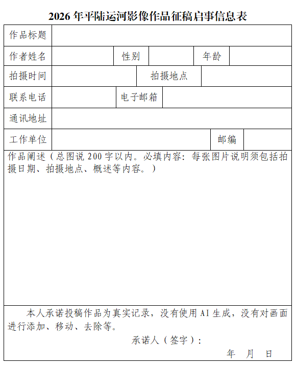 2026年平陆运河影像作品征稿启事信息表 .doc